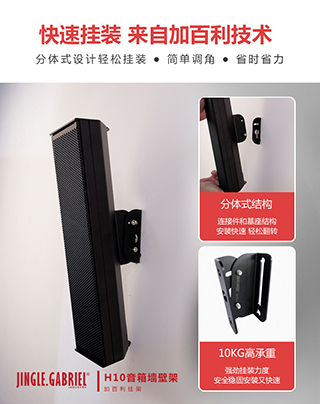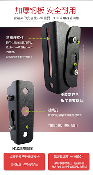 H10音箱架使用冷轧钢板制成,非常安全。它的设计坚固且耐用,是专业壁挂音箱的首选挂架。 |