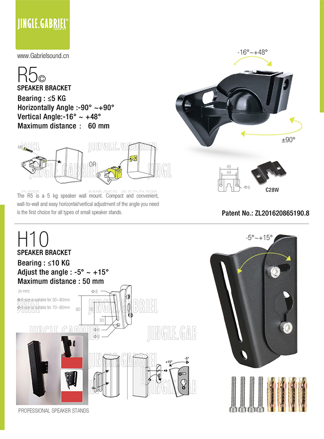 适用产品:承重≤10KG 扬声器 安装方式:墙壁 可调角度:单向摆动,水平或者垂直调节