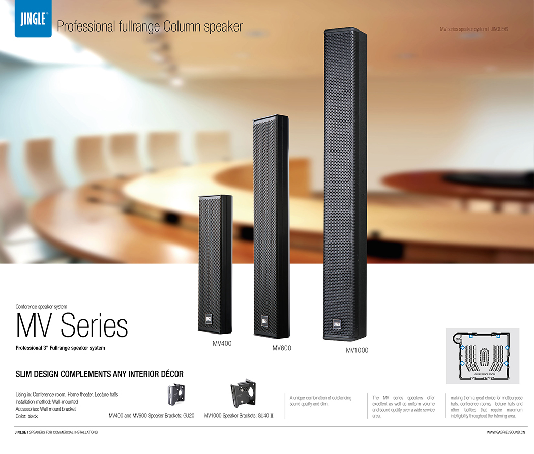 MV Series use a slim speaker configuration, making them an easy fit perfectly for conference rooms that demand voice clarity while imposing numerous constraints on space, and require both functionality and a sense of design.